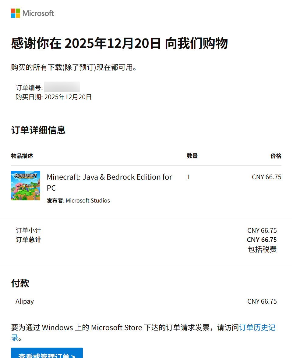 趁着MC正版打折买了个新MC号,但是用的是旧微软账户